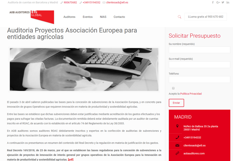 ‘Auditoria Proyectos Asociación Europea para entidades agrícolas’