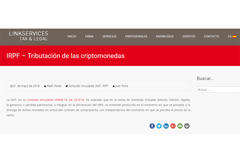 IRPF Tributación de las criptomonedas En el blog de LINKSERVICES-ETL Global – Mayo 2018
